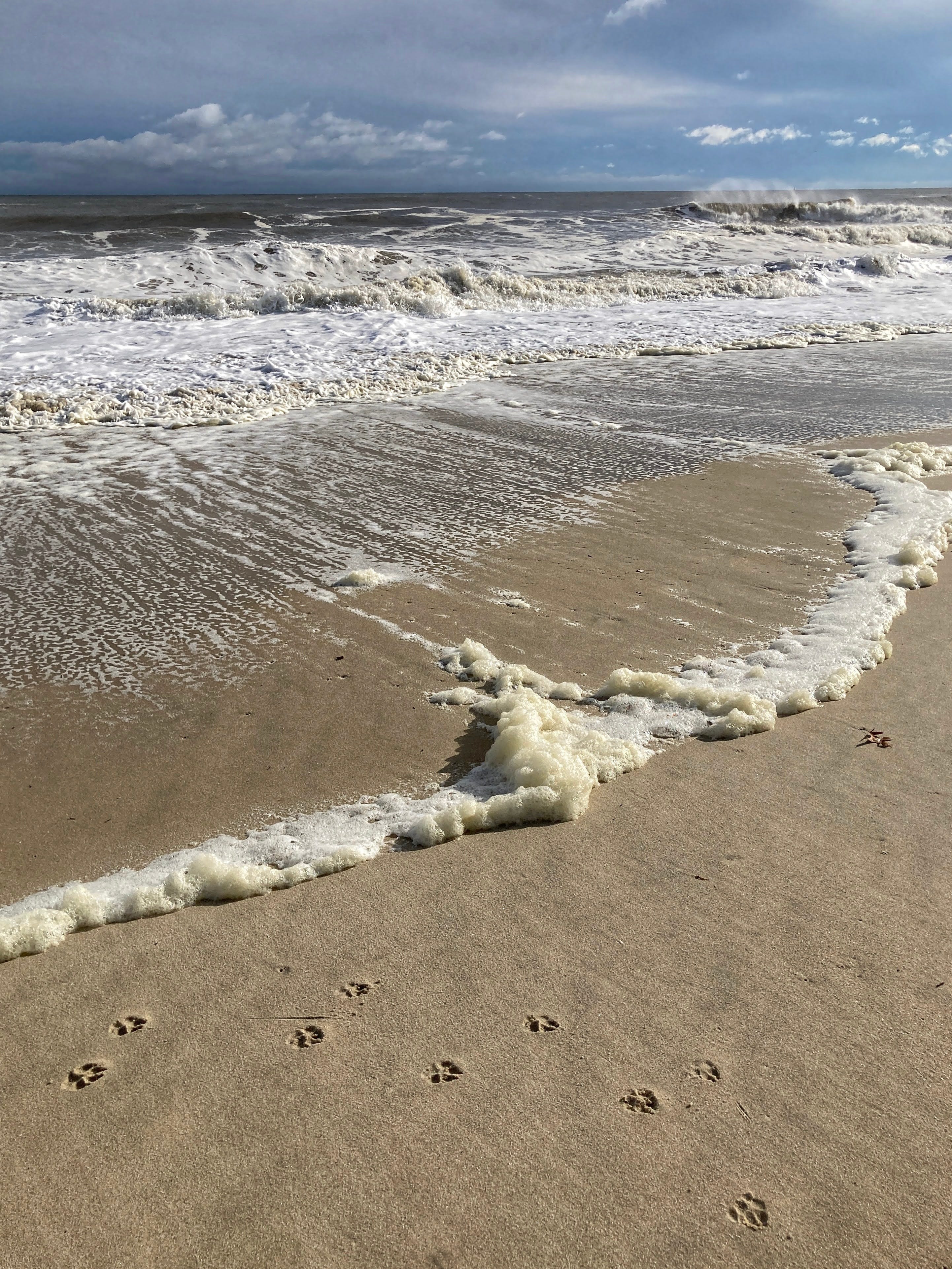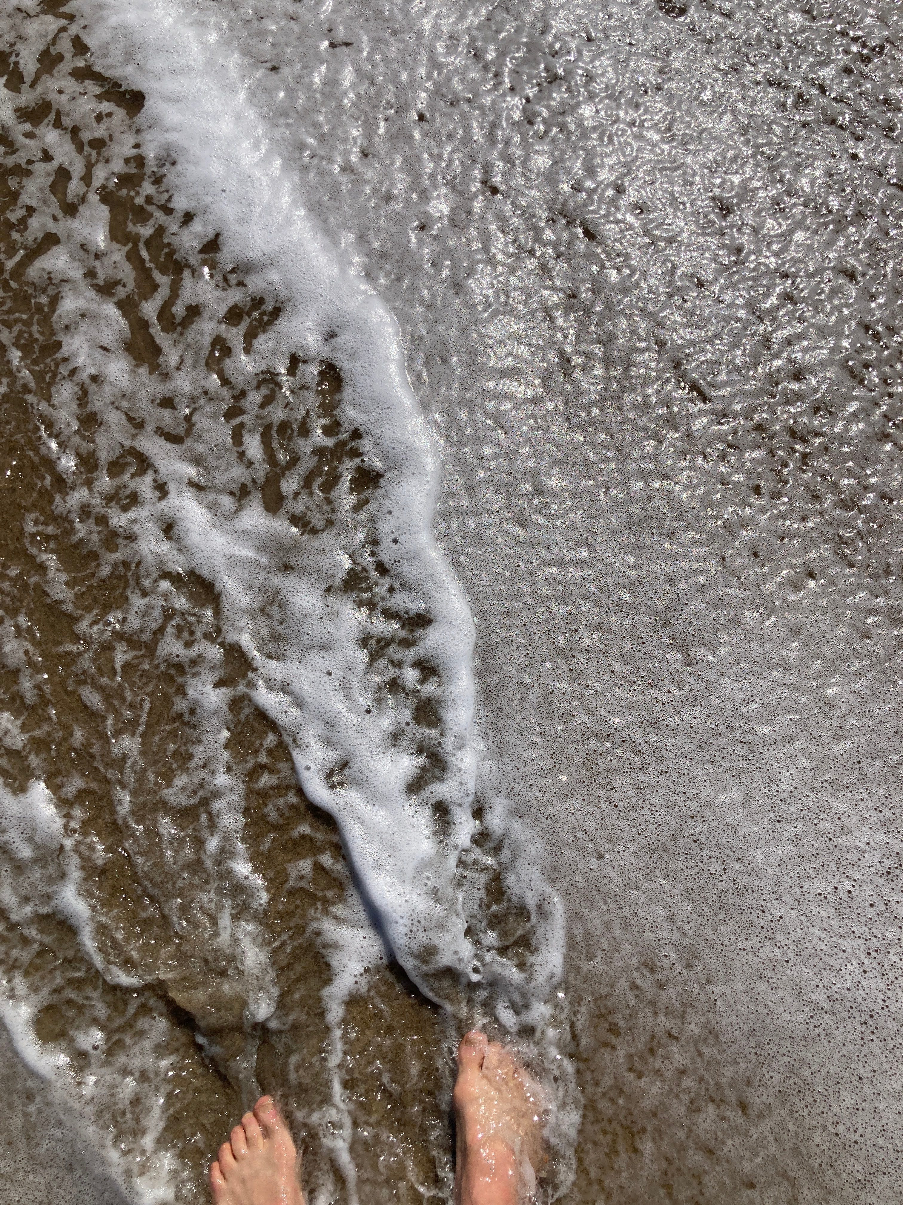 Spindrift gathers in the roiling border between mare e terra, and I’m thinking how I prefer Italian terms of the sea. Not foam, but schiuma. La schiuma rolls and falls over itself, like some non-Newtonian substance, unable to merge with the beach, gliding back over the wet cheek of sand to collect and spread and shapeshift as it mediates the intercourse of sea and land.